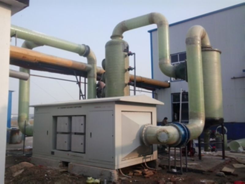 由除塵過濾器、換熱器、急冷塔、冷凝器、冷卻塔、無填料凈化塔、填料凈化塔、低溫等離子體、復合光觸媒凈化器、風機、風管等組成,也可根據用戶要求,采用PLC控制及自控儀表,全程監控工作狀態,超標報警,實現自動化管理。