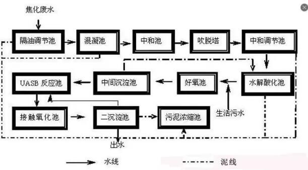 廢水主要有煉焦煤帶入的水分不同而變化。對于焦油蒸餾和酚精制蒸餾中分離出來的某些高濃度有機廢水,因其中含有大量不能再生和生物難降解的物質,一般送焦油車間管式爐焚燒。 高濃度廢水主要來自煉焦、煤氣凈化、化產品回收及產品精制過程中,從煤氣或工藝介質中分離出來的水,是焦化廠廢水處理的主要對象;低濃度廢水,如煤氣水封水、化工介質輸送泵的軸封水,含污染物濃度相對較低,其中高濃度廢水中含有大量的油類、酚、氰和氨氮等,該股水匯同其它低濃度焦化廢水進入廢水處理系統。