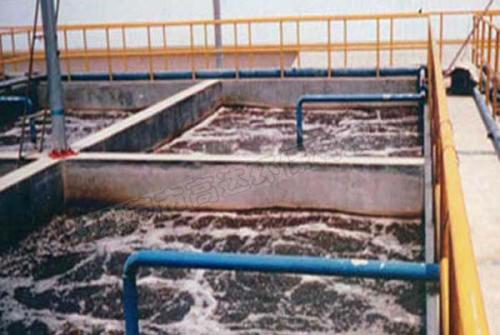 經上述工藝處理,大部分有機物被降解后,廢水經兩級生物接觸氧化反應。接觸氧化池中填料采用當前新型的立體彈性填料,由于該填料具有獨特的結構形式和優良的材質工藝選擇,使其具有使用壽命長、不堵塞、充氧性能好、耗電小、啟動掛膜快、脫膜易、耐高負荷沖擊、耐酸耐壓,處理效果顯著等優點,其比表面積大于300m2/m3。接觸池設計氣水比20:1;曝氣頭采用曝氣均勻且效果好的膜片式微孔曝氣頭,其表面布氣均勻,具有氣泡上升速度慢、充氧利用率高,使用時可以隨時停機,不會堵塞,耐腐蝕。