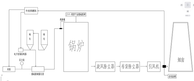 本設備包括:脫硫、脫硝催化系統、輸送系統、噴射系統、電控系統組成,該工藝的流程圖詳見脫硝工藝流程圖附件。