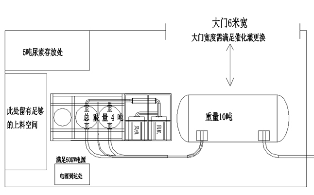 2、催化罐長5米,高3米,重約10噸。房屋進門建議寬度6米,高度5米。